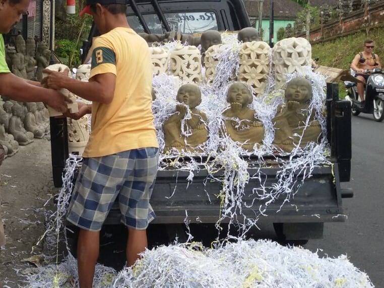 The planning that has happened to get to this point – trip to Bali – hunt products – choose products – order – handcraft products – delivery – wrap and package – then finally stuff the container. Wayan and his helpers do an amazing job helping to make this happen. WhatsApp, an app on our smartphones, is a valuable tool between us along the way.
